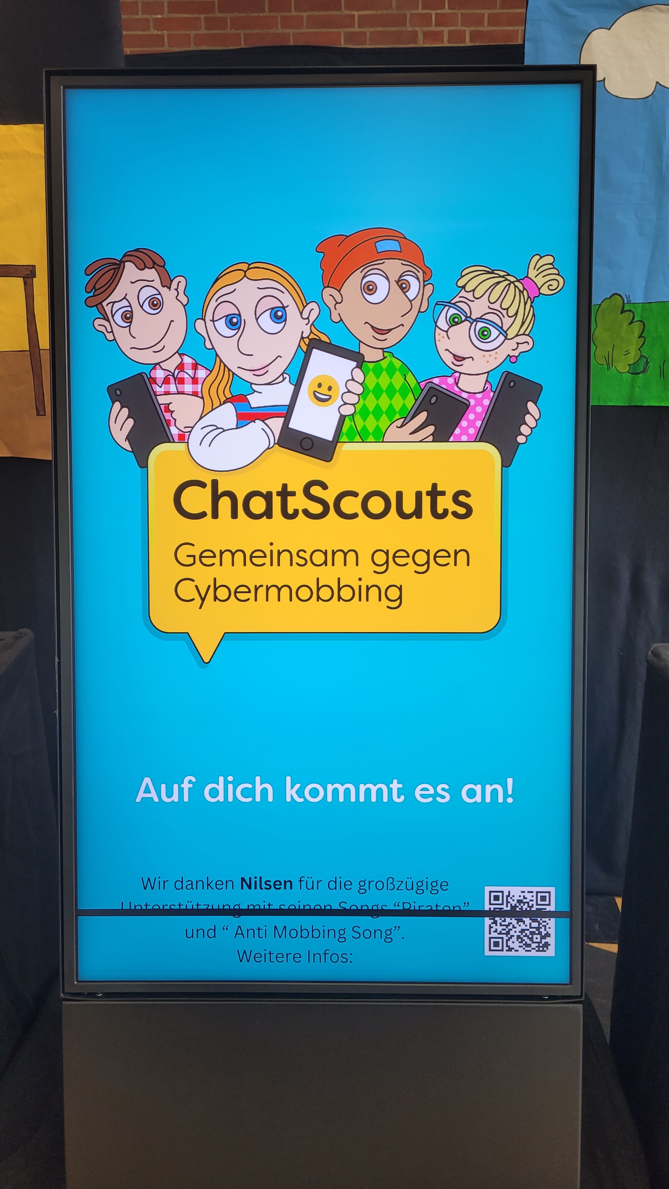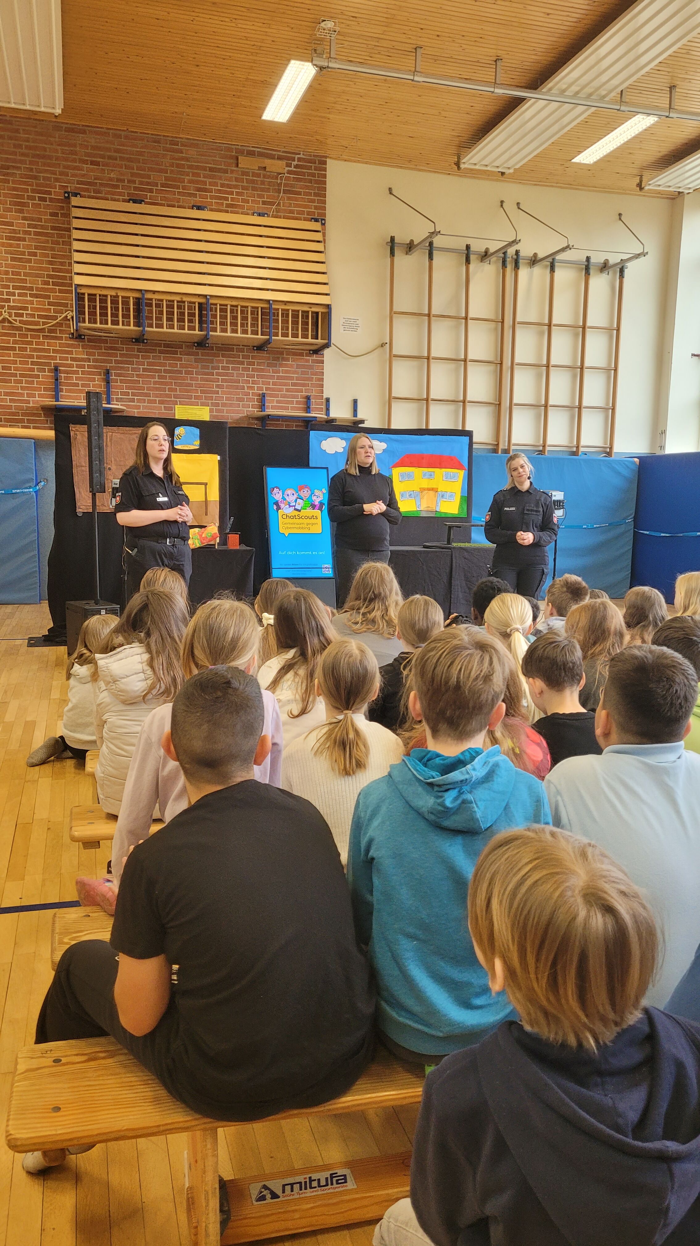 Die Kinder der 3. und 4. Klassen haben sich das Theaterstück „Chatscouts“ zu den Themen (Cyber-)Mobbing und Mediennutzung angesehen. Darin postet die Schülerin Lilli ein Tanzvideo von sich im Internet. Zwei Mitschüler mobben sie daraufhin in der Schule und im Chat stehen immer mehr gemeine Kommentare. Lilli geht es immer schlechter, doch sie erhält Unterstützung und Ermutigung von ihrer Freundin Merle.