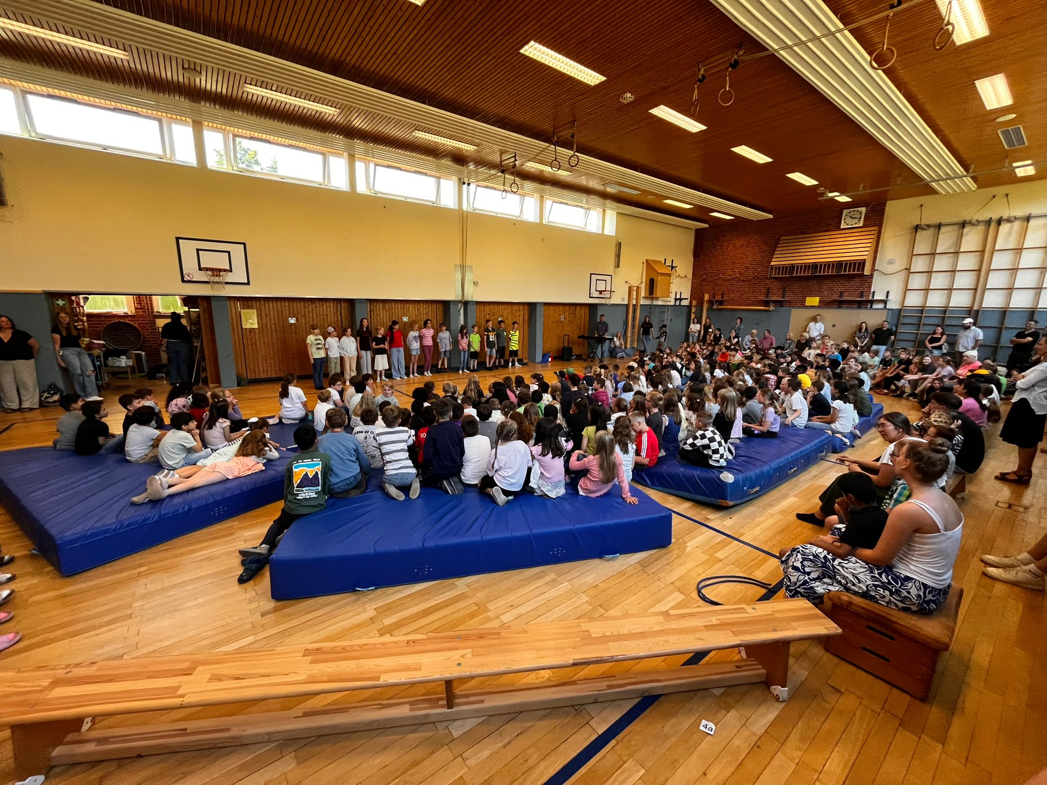 Am 30.6. fand zum Ende des Schuljahres unser Sommerforum statt. Die zweiten Klassen haben uns mit einem Lied auf die Ferien und auf einen hoffentlich schönen sonnigen Sommer eingestimmt. Es gab zwei mitreißende Tänze zu sehen, ein Abschiedslied von der 4c und ein Musical von der 4b. Mit einem lachenden und einem weinenden Auge haben wir uns von den vierten Klassen verabschiedet.