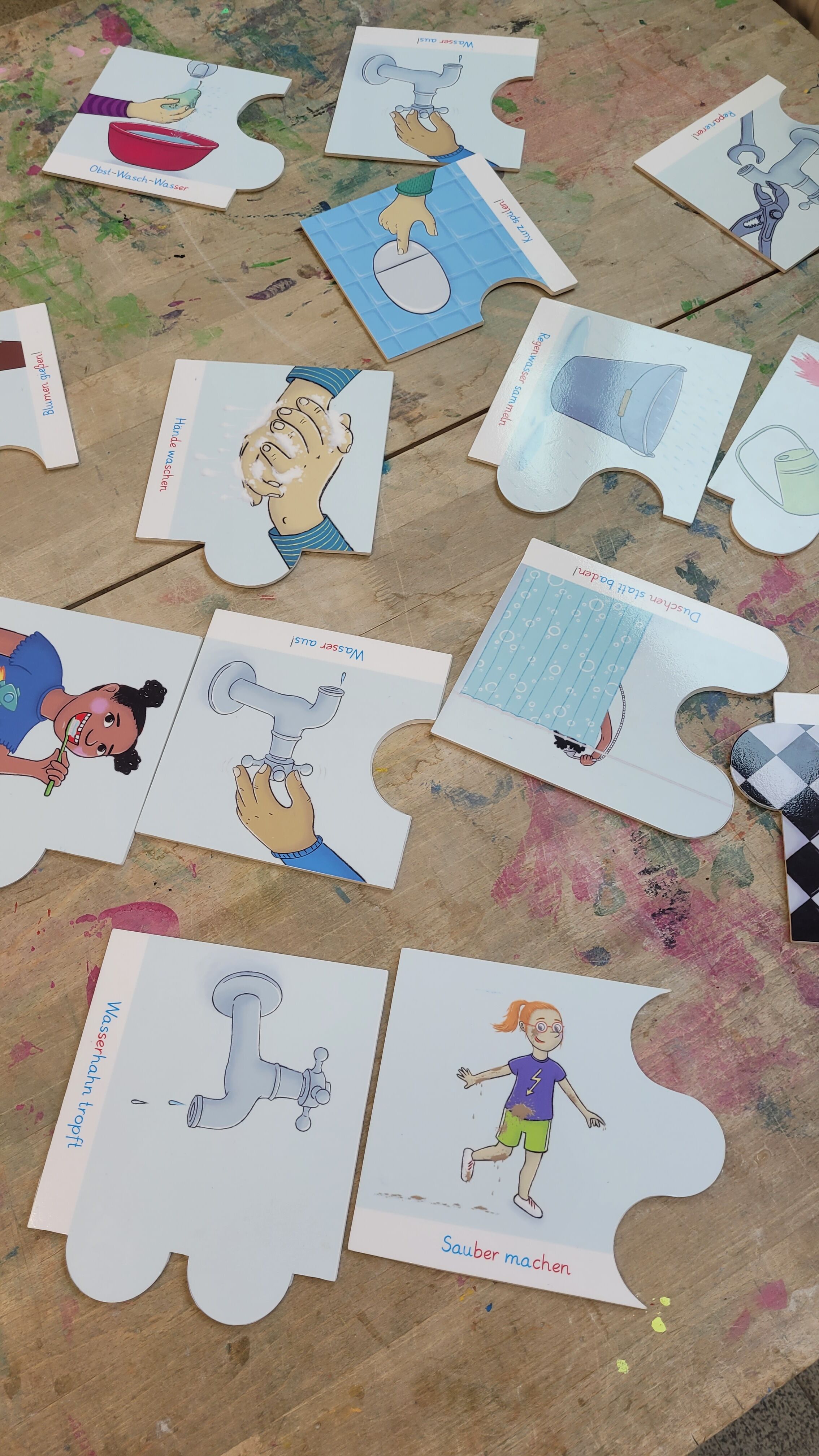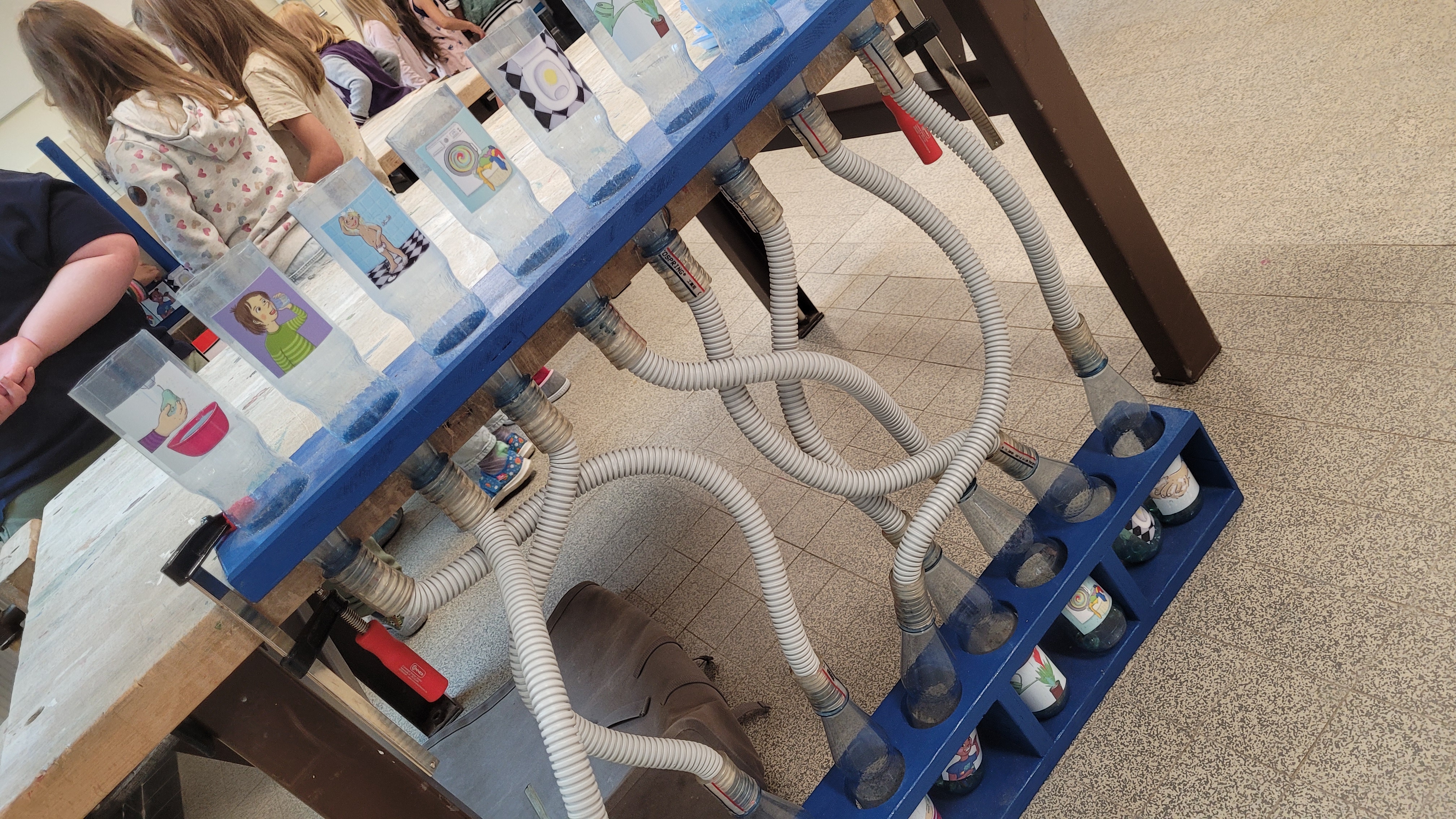 Am 28. und 29. August nahmen alle 2. Klassen an einem interaktiven Workshop zum Thema „Wasser ist kostbar“ der Klimaschutz- und Energieagentur Verden („kleVer“) teil. An verschiedenen Selbstlernstationen rund ums Thema Wasser konnten die Kinder erfahren, wie viel Wasser sie im Alltag für verschiedene Tätigkeiten verbrauchen und wie sie aktiv zum Wassersparen beitragen können. Außerdem ging es um die Frage: Warum ist Wasser für unseren Körper so wichtig und wie viel Wasser steckt eigentlich in Obst und Gemüse? Auch ein erstes Verständnis zur Wasserreinigung wurde angebahnt, indem die Kinder eine natürliche Filteranlage mit Steinen, Kies und Sand ausprobieren konnten. Die Kinder hatten im Rahmen dieses Workshops viel Freude, sie konnten ihr Wissen erweitern und es auf ihren Alltag übertragen.