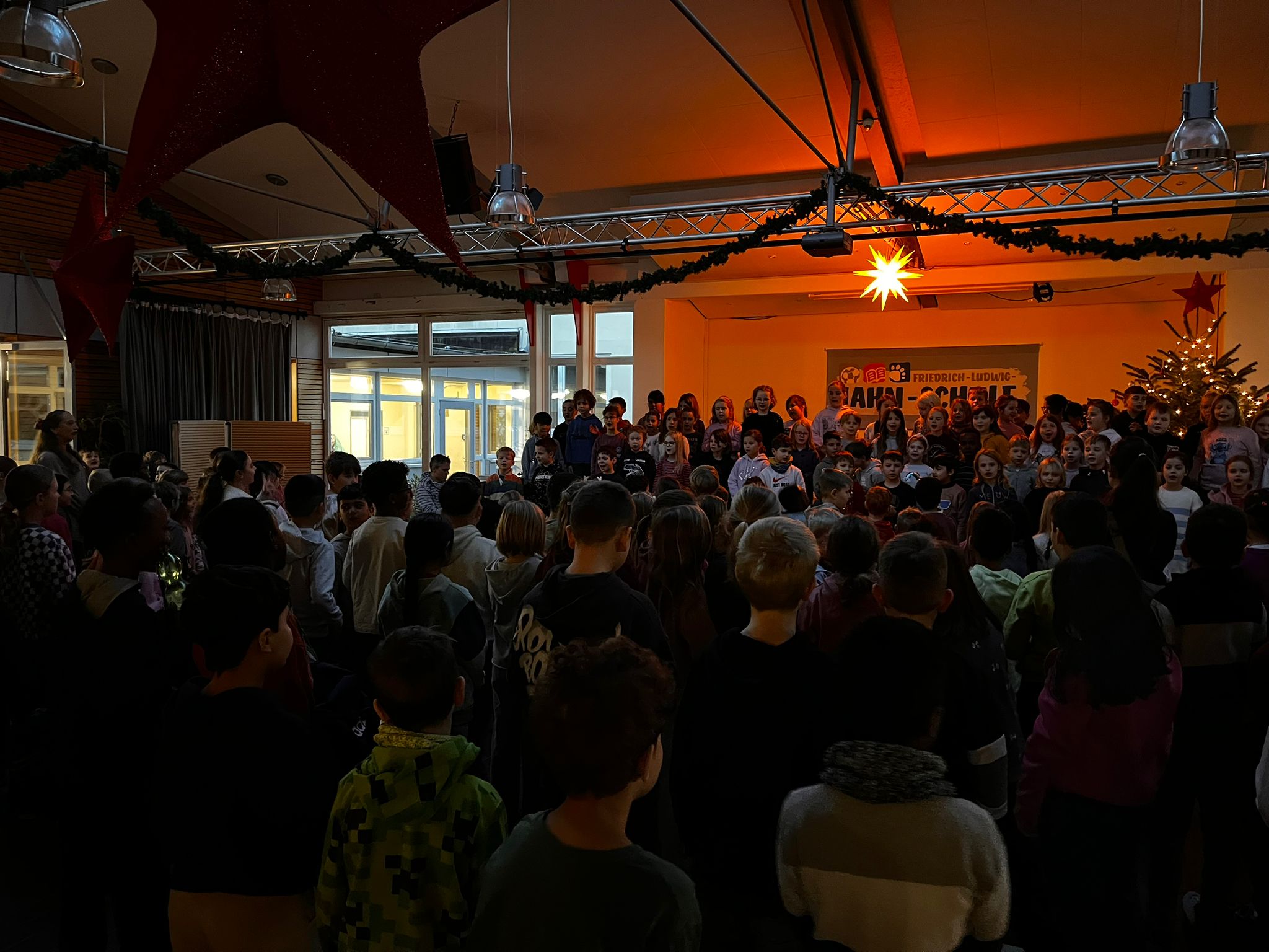 So schallte es am 8. Dezember in der Aula laut aus vielen Kehlen: "In der Weihnachtsbäckerei" und "Dicke rote Kerzen".