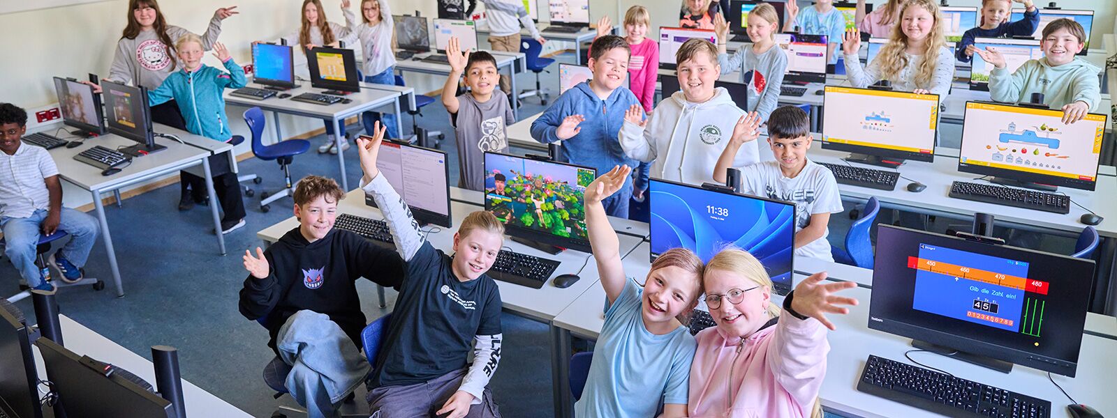 Jedes Jahr feiern wir gemeinsam die Einschulung. Mit einer festen Kooperationsklasse der Grundschule findet gemeinsamer Kunst- und Sportunterricht statt. Wir treffen uns in der Pause zum Spielen und Tanzen auf dem großen Schulhof. Auch bei gemeinsamen Projekten, Ausflügen und Feiern haben wir viel Spaß miteinander.